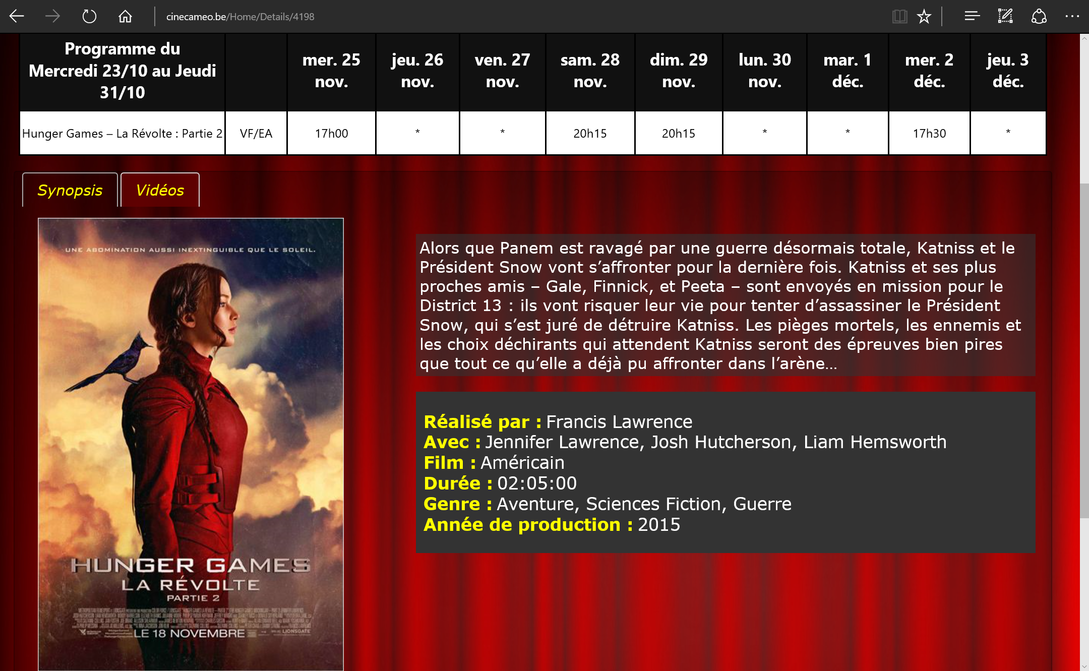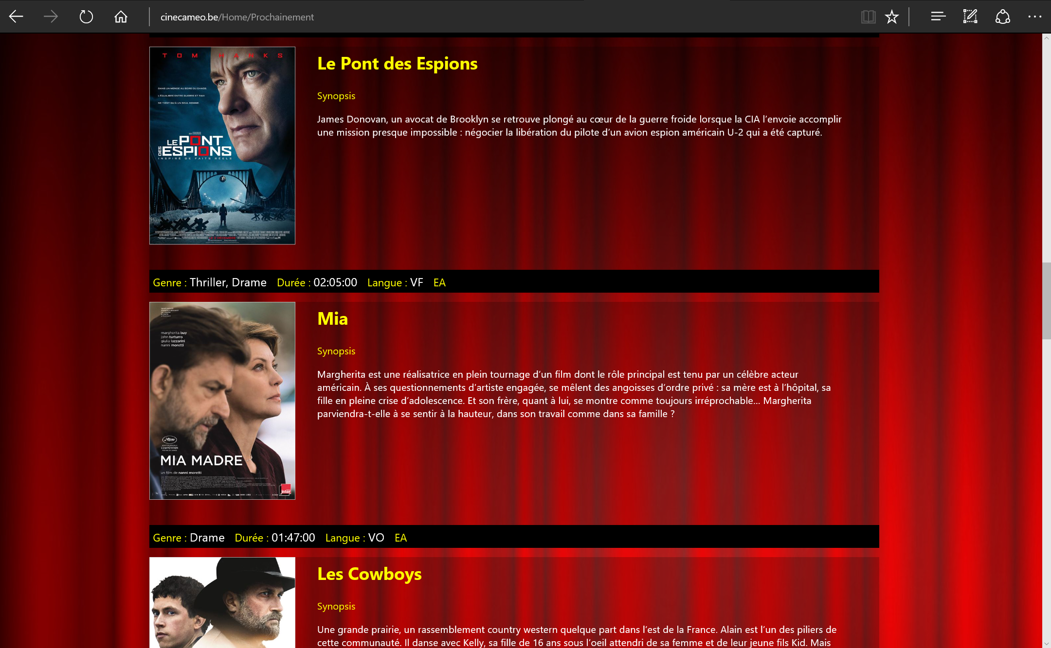 Découvrez des captures d'écran provenant du site disponible sur www.cinecameo.be :