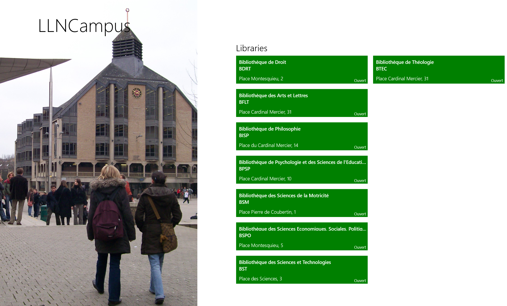 Captures d'écrans de l'application sur tablette avec un slide latéral :